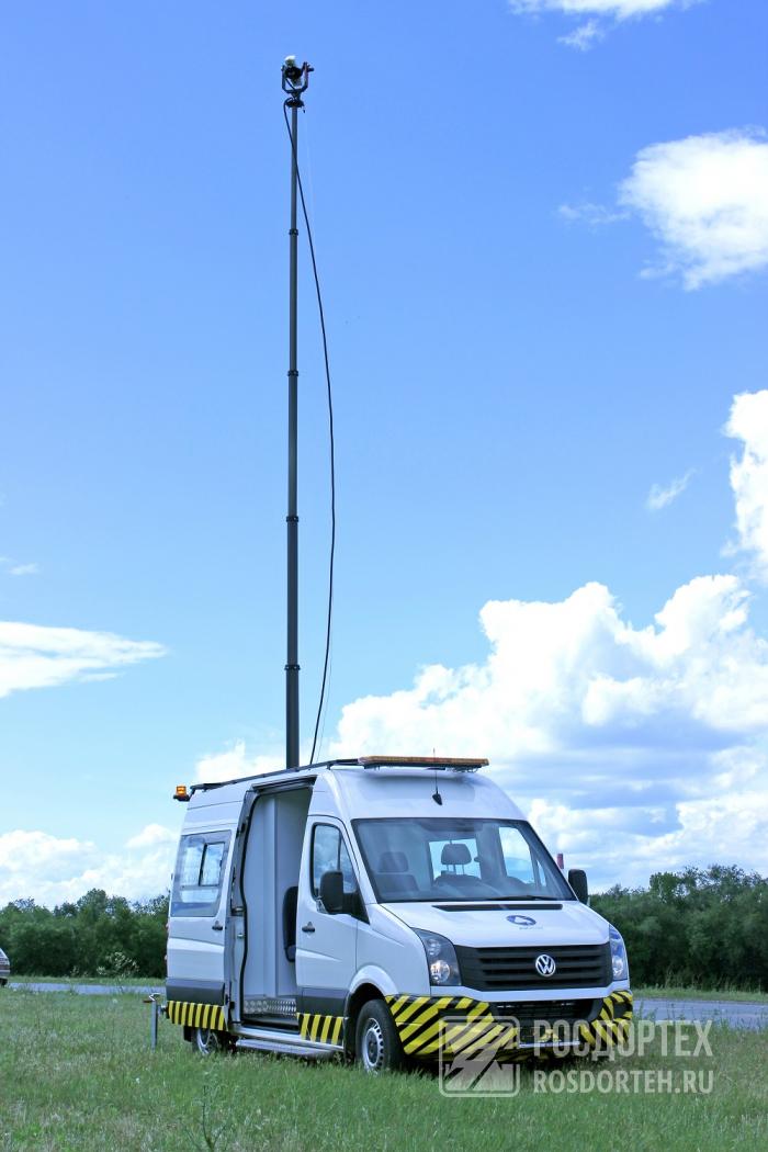Возможен так же вариант дистанционного управления с джойстика (без опускания мачты для настройки), с поворотной головкой. Подъем штанги осуществляется автоматически с пульта управления с помощью компрессора подкачки воздуха.