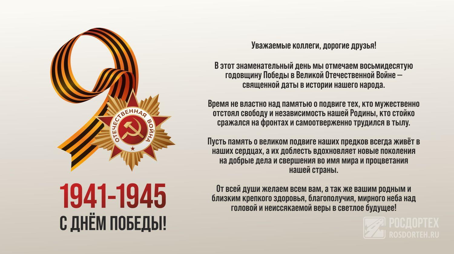 РОСДОРТЕХ поздравляет с C 80-летием Победы в Великой Отечественной Войне!